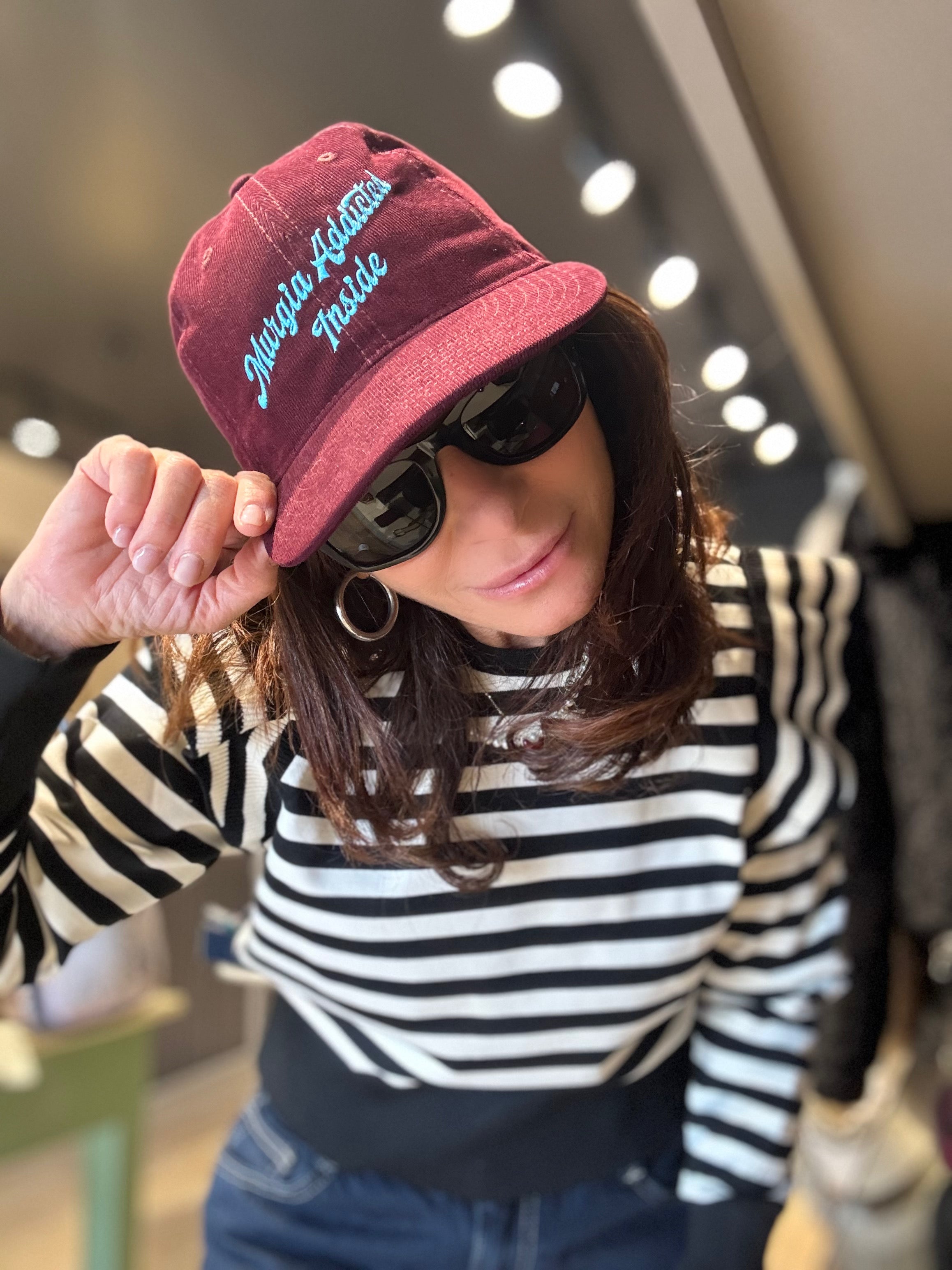 BERRETTO CON VISIERA IN VELLUTO E SCRITTA RICAMATA
